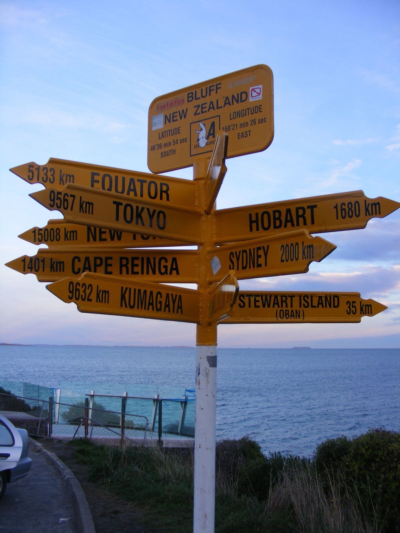 El coche respondió convenientemente, y a eso del atardecer entrábamos a Invercargill, la ciudad más grande al sur, antecedente de Bluff. Rodeada de agua, la península que conecta ambos puntos ofrece un banquete de trescientos sesenta grados donde confluyen playas solitarias, una bahía de amarras que exhibe sus veleros y sus botes, y un pequeño conjunto de colinas de verde césped.