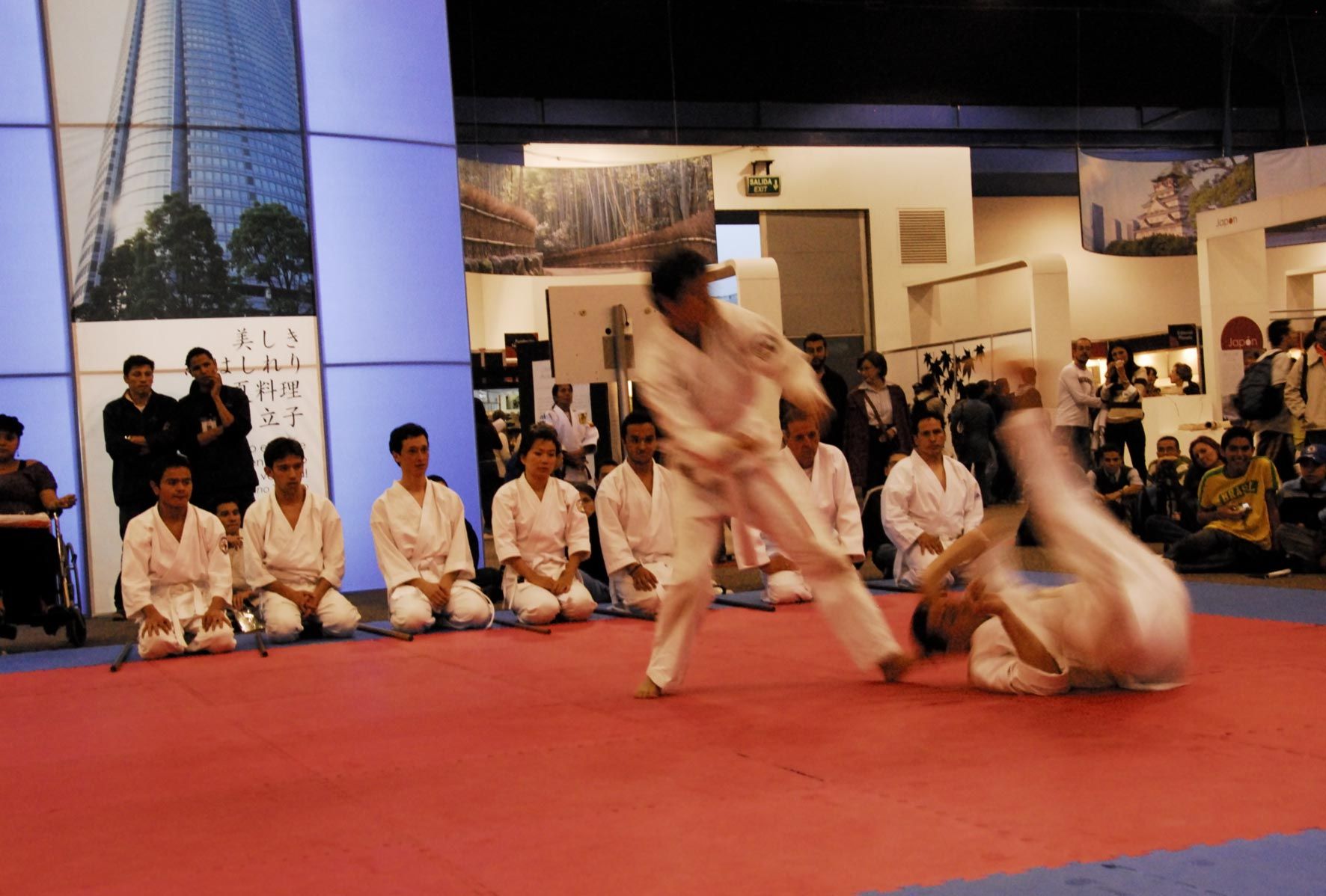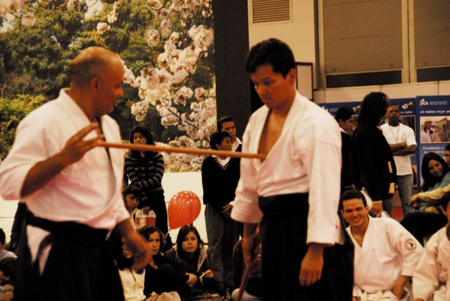 El manejo de la fuerza del contrario para derribarlo es el mismo principio del Judo, otra arte marcial japonesa, que se exhibe en la Feria del Libro de Bogotá. Foto: Patricia Hall. Buque de Papel.