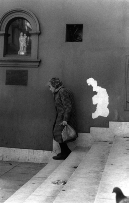 Él, como todos, deja su rastro en las calles. Queda su imagen atrapada en algunas paredes; su andar ha sido seguido por la mirada aterrada de los buitres de la ciudad: no le gustan las palomas.