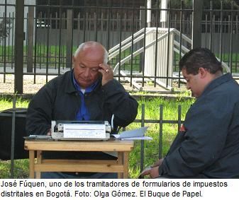 Y esta anécdota, que parece extractada del cuento más corto del mundo, el de Augusto Monterroso y su dinosaurio parece que se trasladó a Bogotá, a la zona del Catastro, en el centro citadino, donde los antiguos tramitadores de los formularios de impuestos distritales, se sientan detrás de una mesa de madera, y acondicionan un parasol para los días de canícula, a la espera de algún cliente mayor de edad o que no manejen computadores. Y llegan.