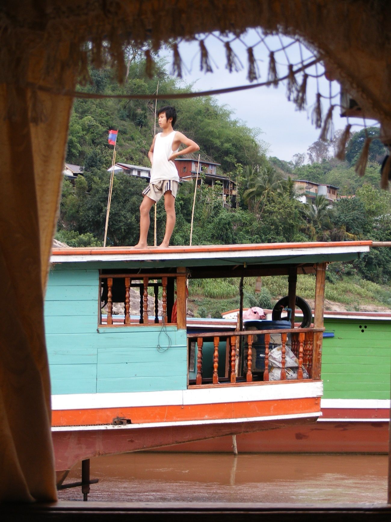 F oto: u n joven Laosiano sobre el techo de una Luang Say( lancha laosiana). Renzo Opromolla. Buque de Papel.