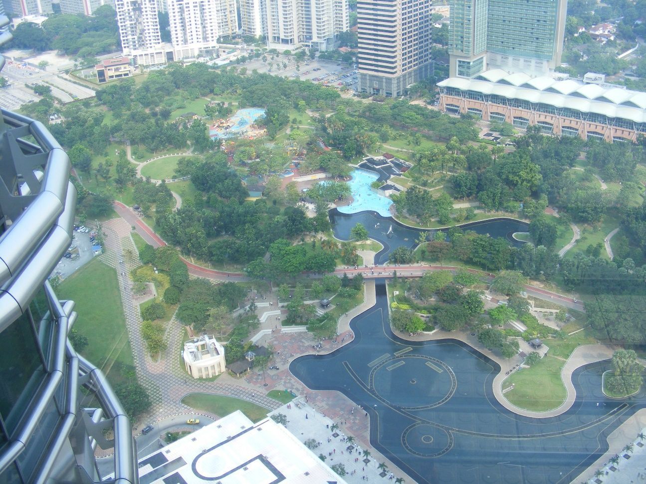 Finalmente a la tarde, tras realizar algunas diligencias, me hice presente para trepar hasta el encumbrado palco. Las medidas de seguridad fueron rigurosas pero fácilmente franqueables. El arribo al piso cuarenta y uno, al “puente del cielo” como ellos lo llaman, es intenso y simboliza la puerta hacia el futuro. La vista que de Kuala Lumpur se obtiene desde esos ciento setenta metros de altura es majestuosa.