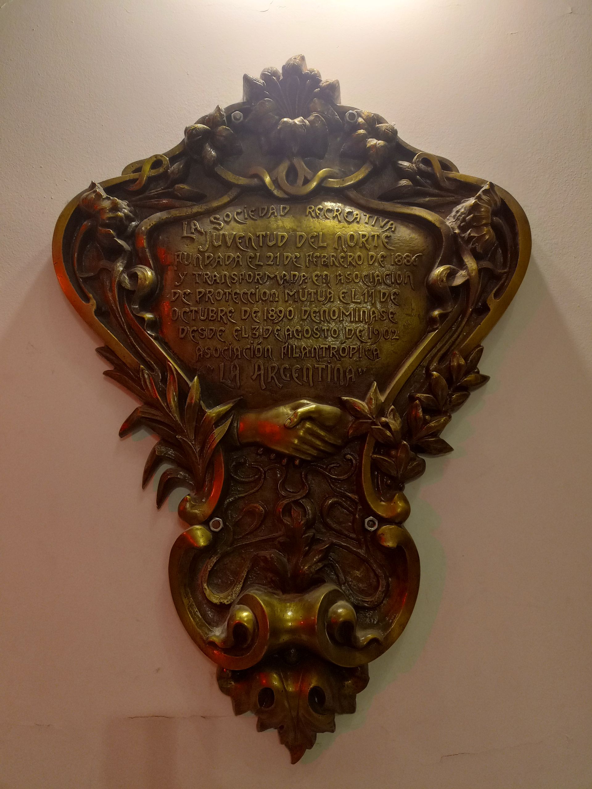 -No, infortunadamente no quedaron. Eran muy costosas en ese entonces y si hubo, tal vez se perdieron -aclara, al decirme, un tanto abatida, que fueron víctimas de robo. -No sabés, se llevaron casi todo, incluso una barra en bronce de los primeros años -afirma, mientras me conduce al segundo piso, a un enorme salón donde está la historia de La Argentina, con el tapiz fundamental de la Asociación, de finales del siglo XIX, los planos originales de la casona y los retratos de los fundadores de la mutual, españoles que llegaron a Santa María del Buen Ayre buscando vida y futuro, como tantas comunidades que apelaron a la asociatividad y a la solidaridad para supervivir y luego construir los barrios, la ciudad, el país.
