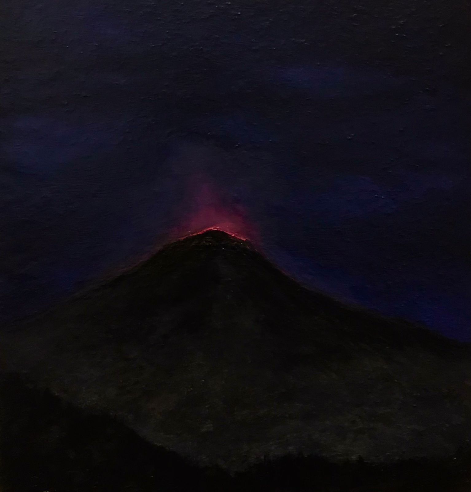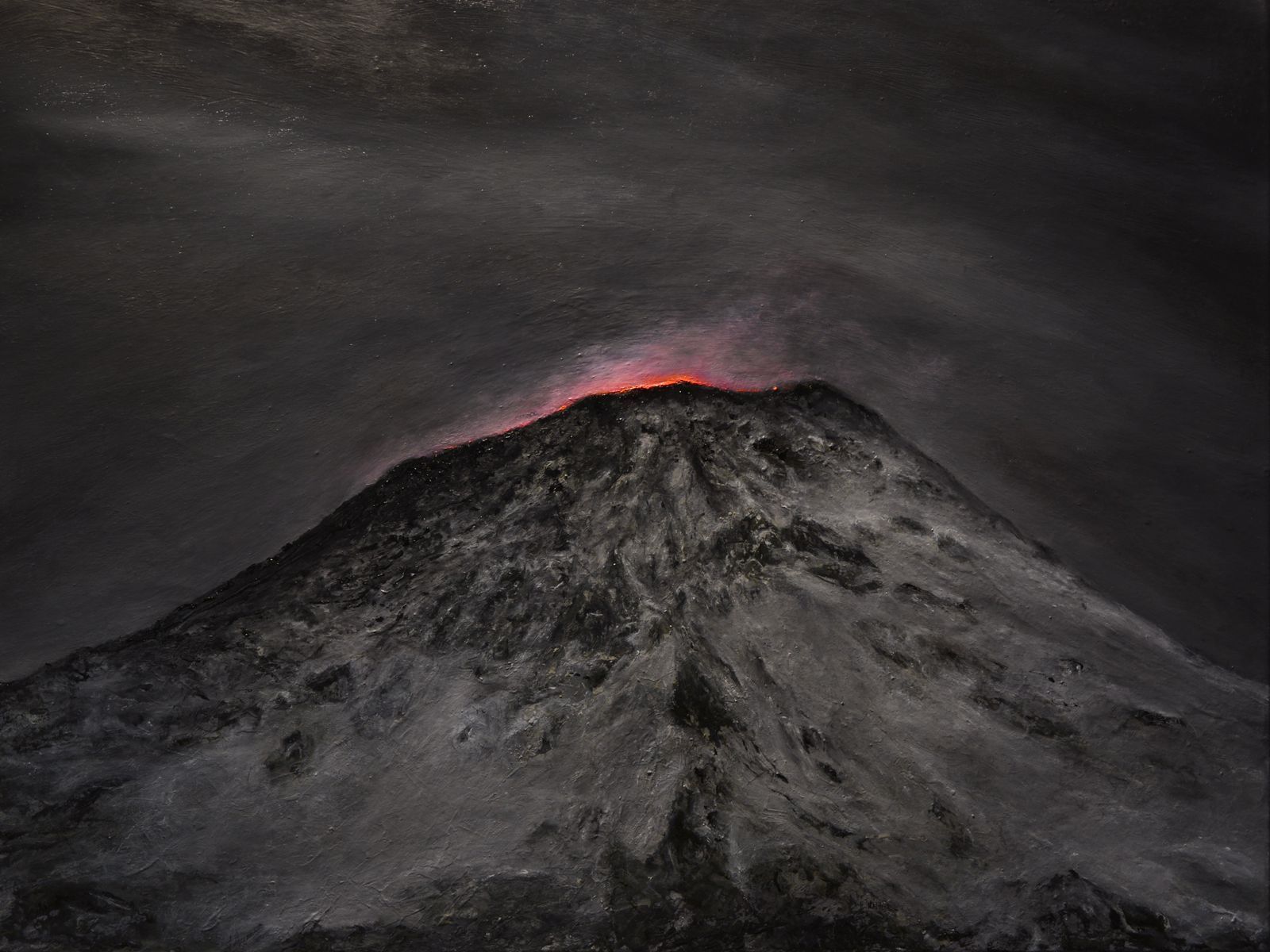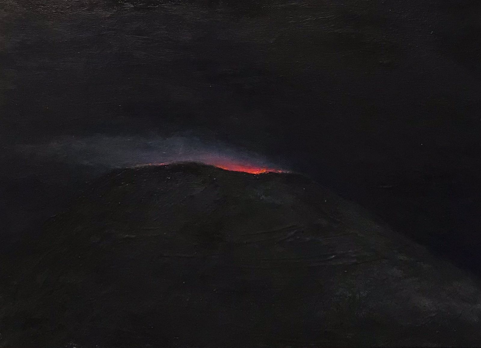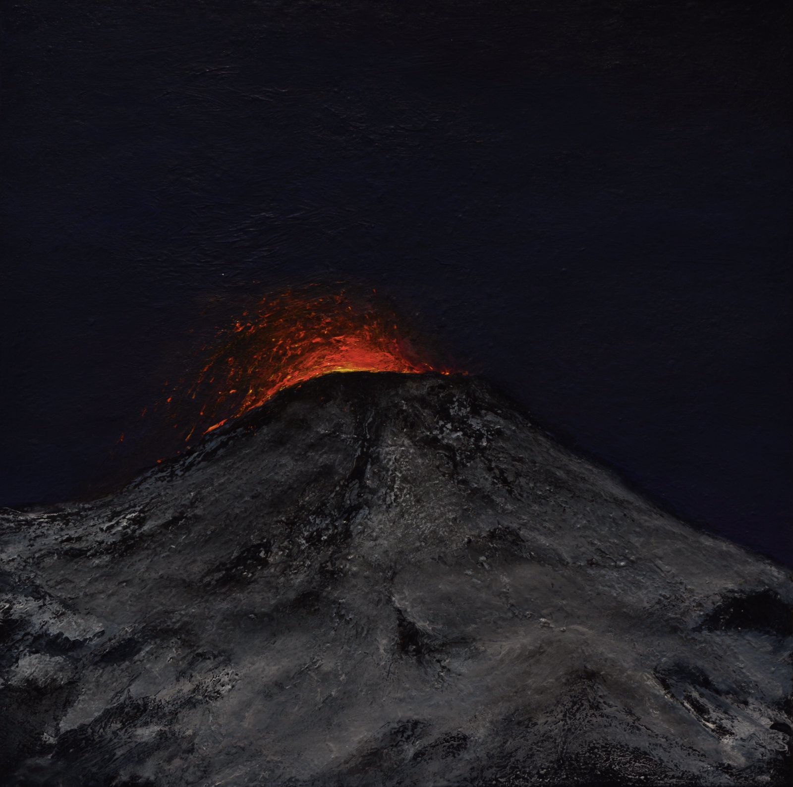“Fueron pinturas al óleo inspirado en la geografía de Chile, una tierra con 90 volcanes activos, y que aún sigo trabajando porque lo eruptivo como recurso plástico tiene varias dimensiones más allá de lo visual. El concepto surge porque estamos transitando una crisis existencial a nivel local y global, todas juntas; crisis política, económica, hídrica, energética, alimentaria, climática, sanitaria, crisis de relato y de creencias”, afirmó.