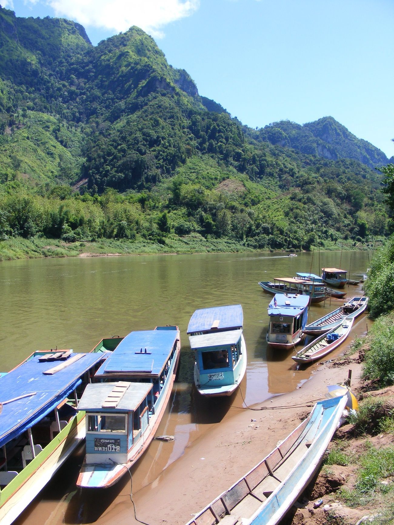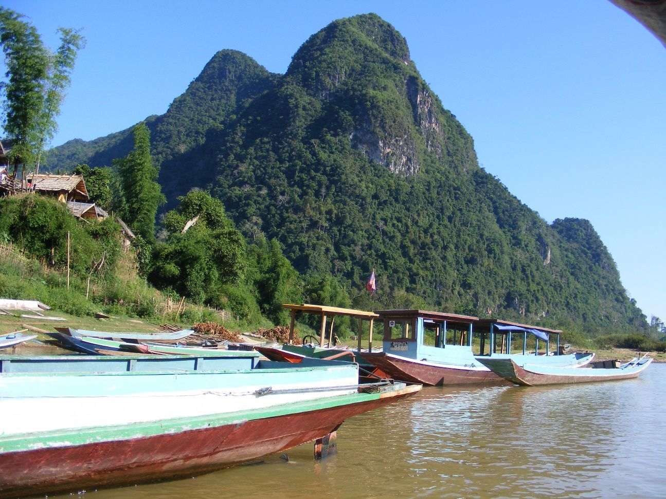 Luego de un par de días, fuimos informados sobre una aldea cercana, contigua al río, que ofrecía a sus escasos huéspedes una estadía donde disfrutar del retiro y la brisa que arrima la corriente. Decidimos seguir la receta. Manoteamos las mochilas y nos sumergimos en el corazón del país. Viajamos entonces tres horas por la ruta hasta Nong Kiew, un sencillo asentamiento al borde del río, entre un conjunto imponente de rocas excelsas que pinchan las nubes. Recubiertas en verde follaje, las tupidas montañas surgen solemnes perpendiculares al agua, mientras un frondoso puente de granito pardo adorna el ya selecto paisaje.