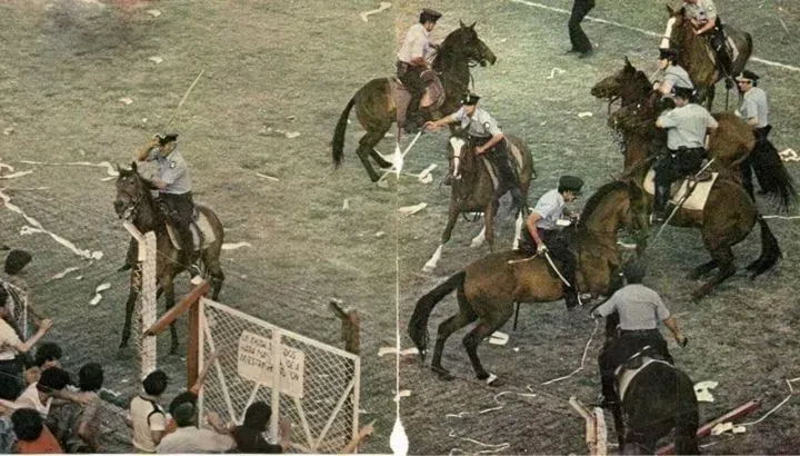 La escena terminó con la policía montada a caballos pegando “como los gauchos de Güemes”, describió el relator televisivo. Era el