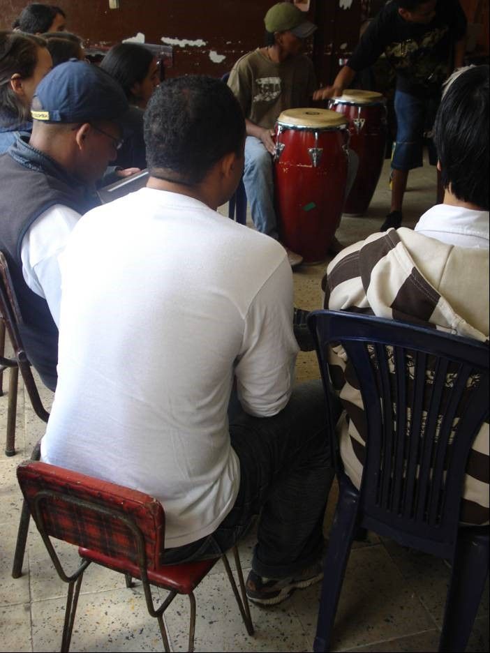 La charla se componía de diferentes aspectos, uno era la parte teórica, donde Larry nos explicaba datos importantes sobre cada uno de los ritmos que debíamos conocer de las costas Caribe y Pacifica colombianas; y la otra parte, la más interesante, era la musical, en la que se daba una pequeña muestra de cómo tocar los instrumentos de percusión según la tonada. Luego los asistentes pasábamos a hacer parte de la interpretación, al poner en práctica la explicación.