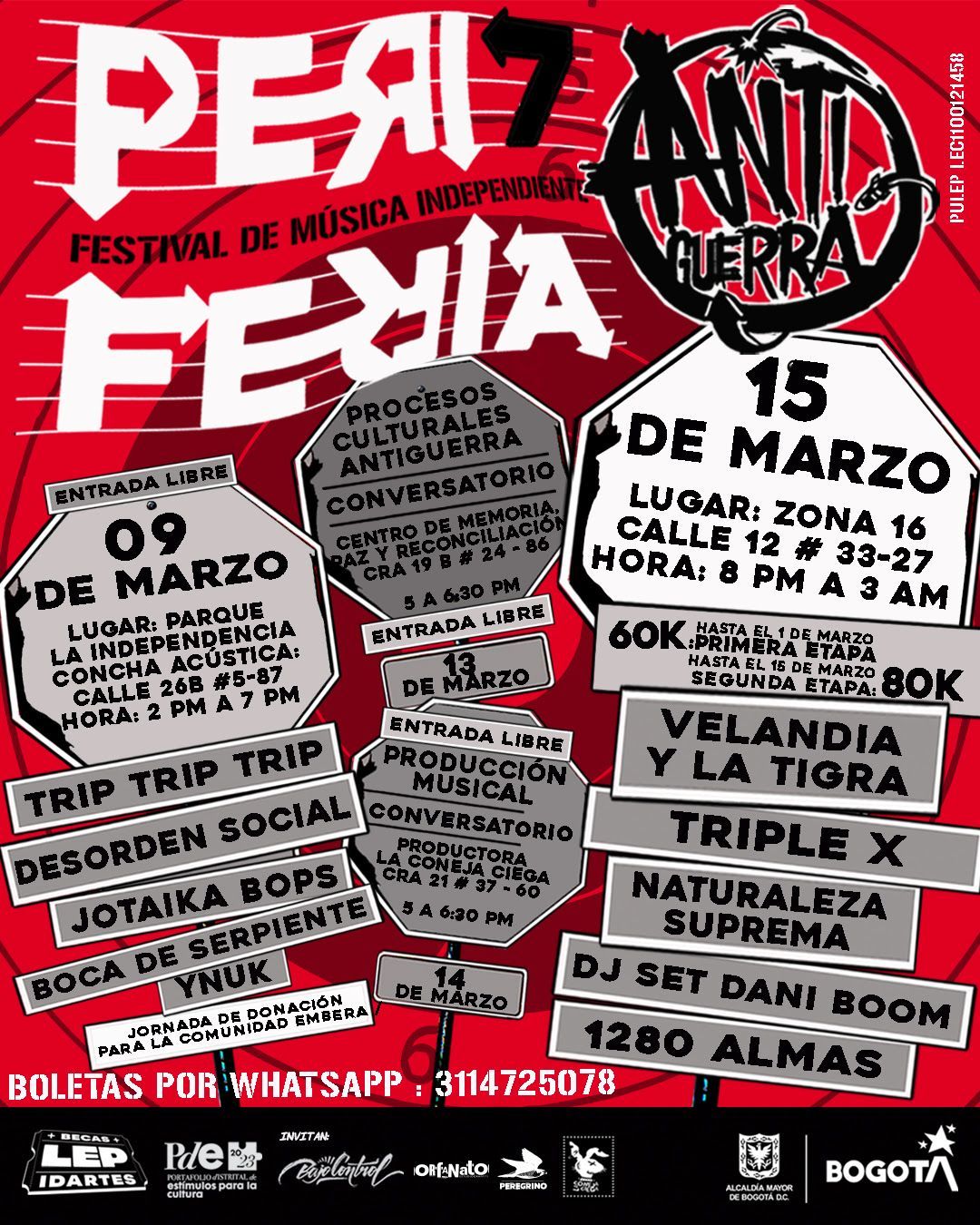 Estarán Velandia y la Tigra, 1280 almas, Naturaleza Suprema, Desorden Social, Boca de serpiente, Ynuk, Jotaika Bops, Trip trip trip, Triple X y Dani Boom; sumados a dos conversatorios sobre producción musical y procesos artísticos de la mano de reconocidos músicos y gestores culturales como Luis Ramírez, de Kraken, Juan Carlos Rojas de 1280 almas y Paola Vargas, directora del VillaJazz Festival.