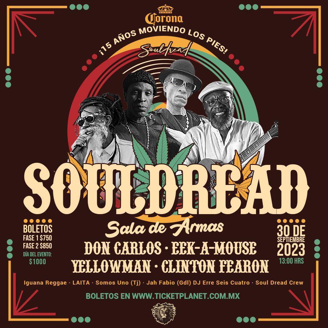 Este evento reunirá a un impresionante elenco de leyendas del reggae jamaicano, como Don Carlos, Eek-A-Mouse, King Yellowman y Clinton Fearon, así como a talentosos artistas mexicanos como Somos Unos, Jah Fabio, Iguana Reggae, Laita, Dj erre seis cuatro y el equipo de Soul Dread Crew.