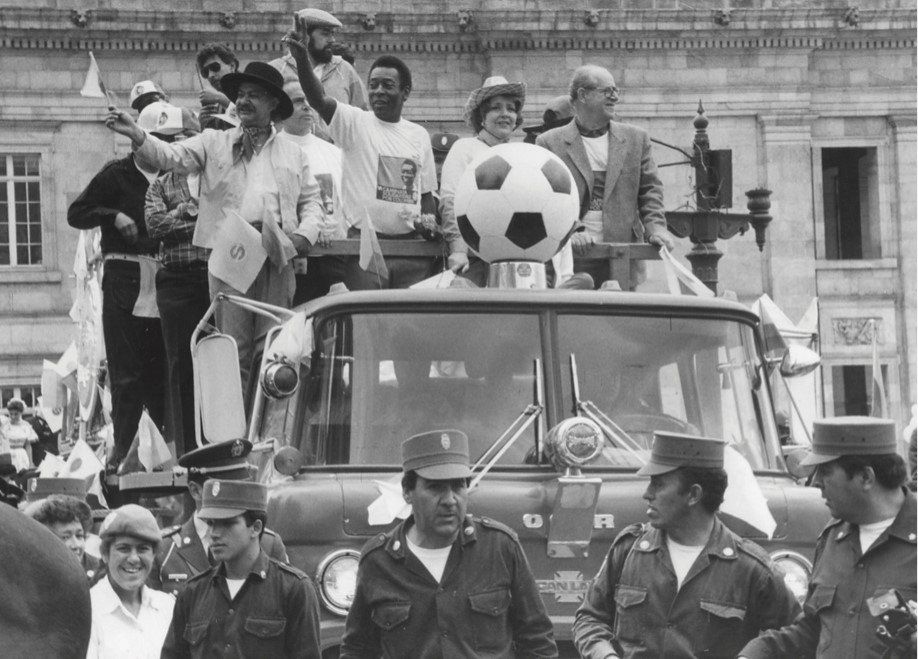 Fue en 1984 cuando encabezó en Bogotá el desfile de la Caminata de la Solidaridad por Colombia, demostrando que estaba convencido de lo que hacía siempre. Y si vino es porque así lo sentía. La camiseta con la imagen del rostro de Pelé y su famosa firma en el estampado duró hasta cuando el jabón Top hizo efecto con cada lavada en casa.