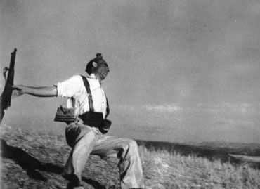 Robert Capa, quien se inventó su nombre artístico, huyó con su familia de los nazis cuando estos dominaban media Europa. Muy joven llegó a España para fotografiar la Guerra Civil. En el Cerro Muriano (Córdoba) hizo la foto del miliciano a punto de morir, doblado por un disparo, que se convirtió en un icono de la guerra española. Aunque hay quien asegura que aquella foto estaba preparada, lo cierto es que aquel día y en aquel sitio murió el miliciano de la foto, Francisco Borrell.