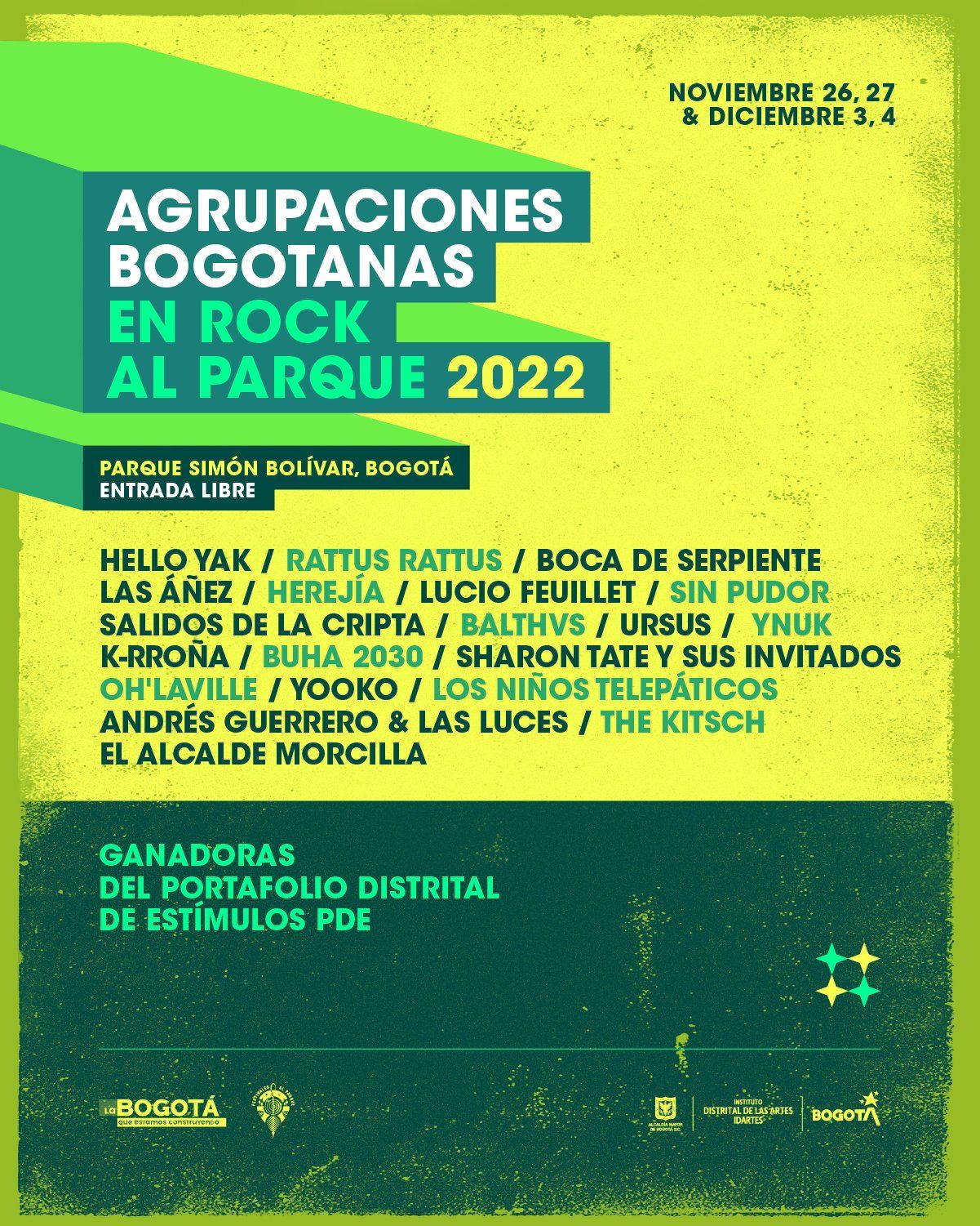 El Instituto Distrital de las Artes (Idartes) anunció seis granes artistas que se sumarán al cartel de Rock al Parque 2022, que se llevará a cabo en dos fechas este año: 26 y 27 de noviembre y 3 y 4 de diciembre.