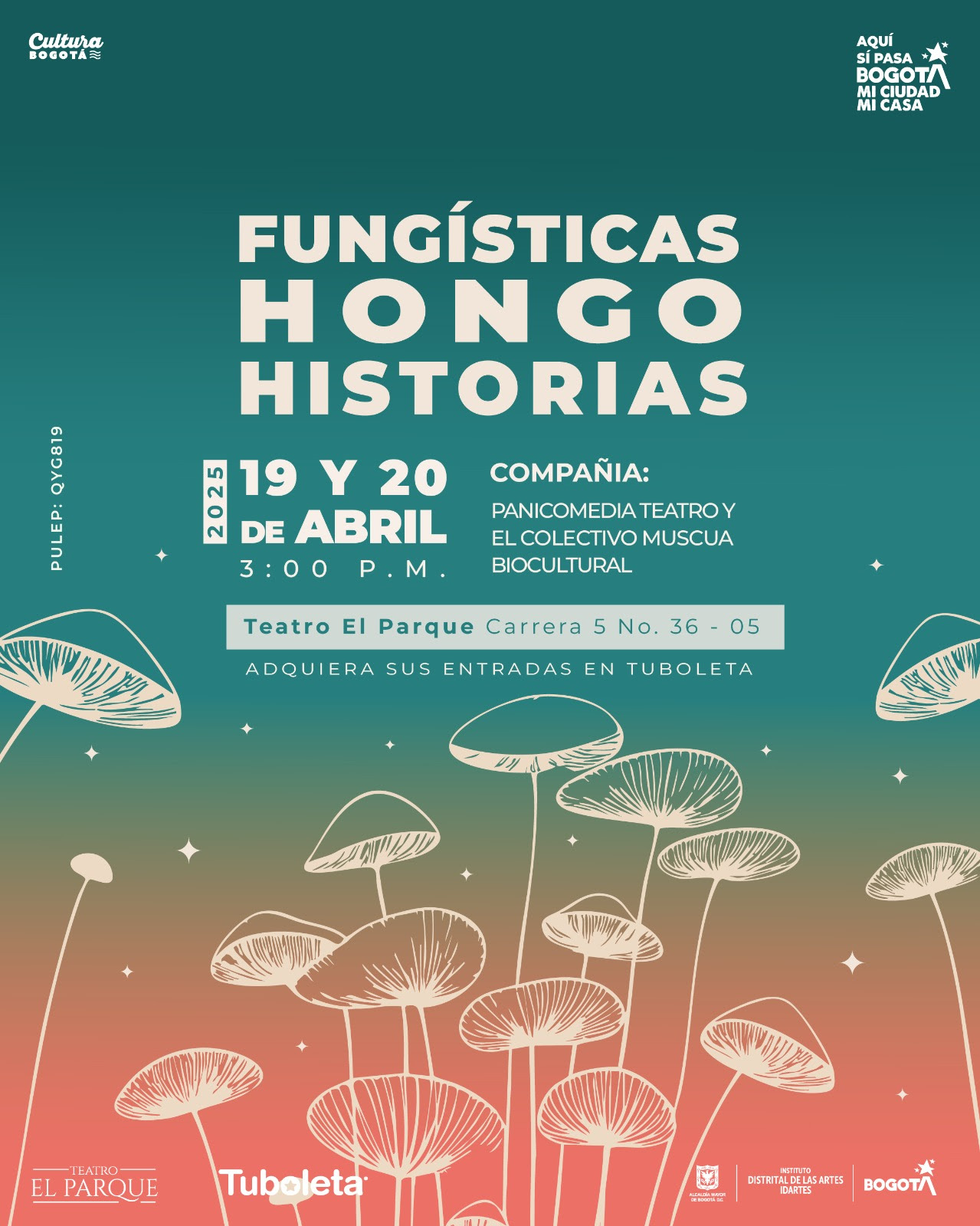 Luego de la exposición el público podrá pasar a la sala a deleitarse con Fungísticas Hongo Historias, obra de Teatro Científico que cuenta la historia de Pierre Saberes y Prudencia Lepista: dos micólogos que exploran el bosque en busca de nuevas especies de hongos con su experiencia y la ayuda de tecnologías especializadas de proyecciones y ultrasonidos.